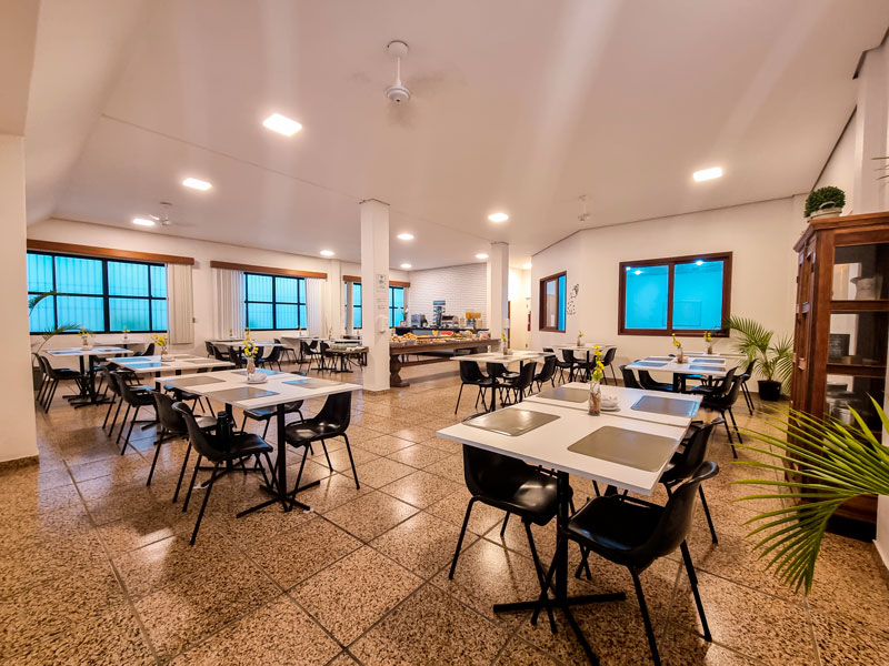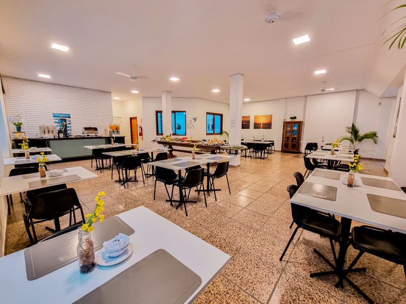 Os hóspedes podem desfrutar da refeição em um ambiente agradável e confortável! Um cenário perfeito para começar o dia com muita energia!